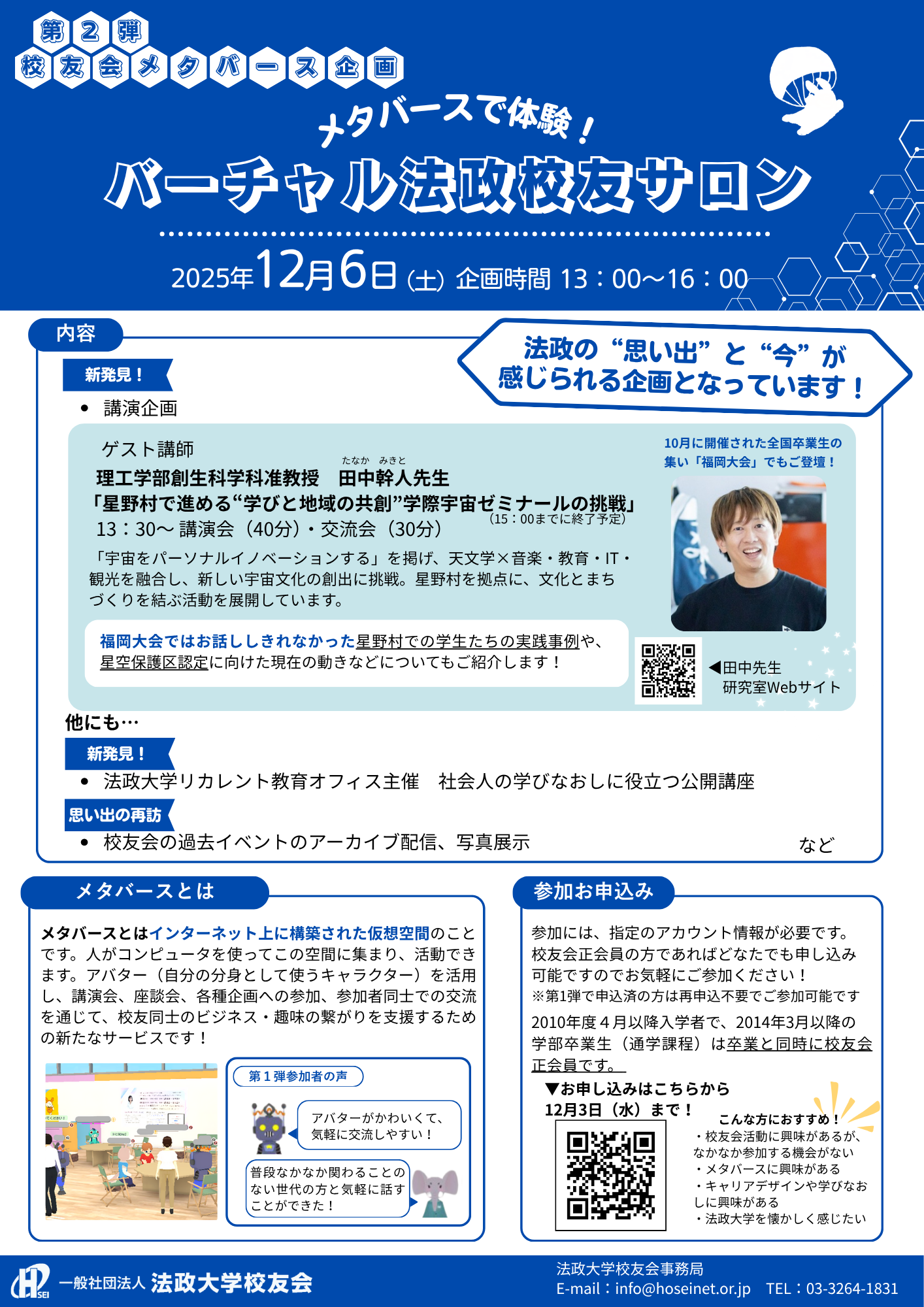 【申込受付中】校友向けメタバース企画第2弾のご案内