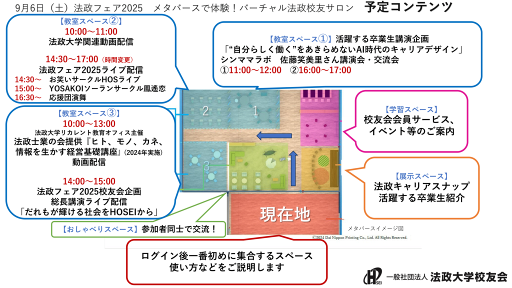 ②オンライン企画 メタバースで体験!バーチャル法政校友サロン (要事前申込)