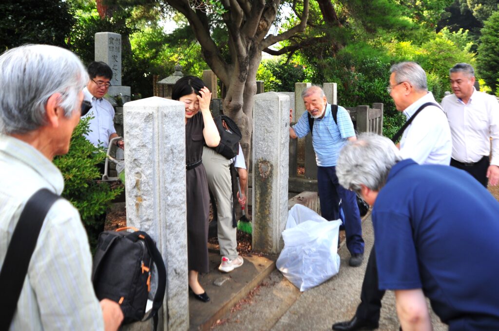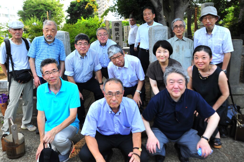 相変わらず猛暑日の炎天下ではありましたが、今回、法学部同窓会からは初参加となる5名を含め、池上会長・齋藤前事務局長を始めとする総勢9名が参加し、岡孝・元法学部教授ほか文学部・小林ふみ子教授、国際文化学部・高柳俊男教授といった毎年恒例のメンバーの皆様、そして梅家ご親族様ともご一緒させていただいての墓参となりました。